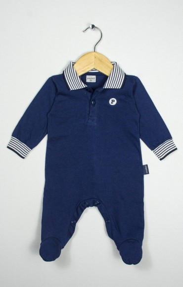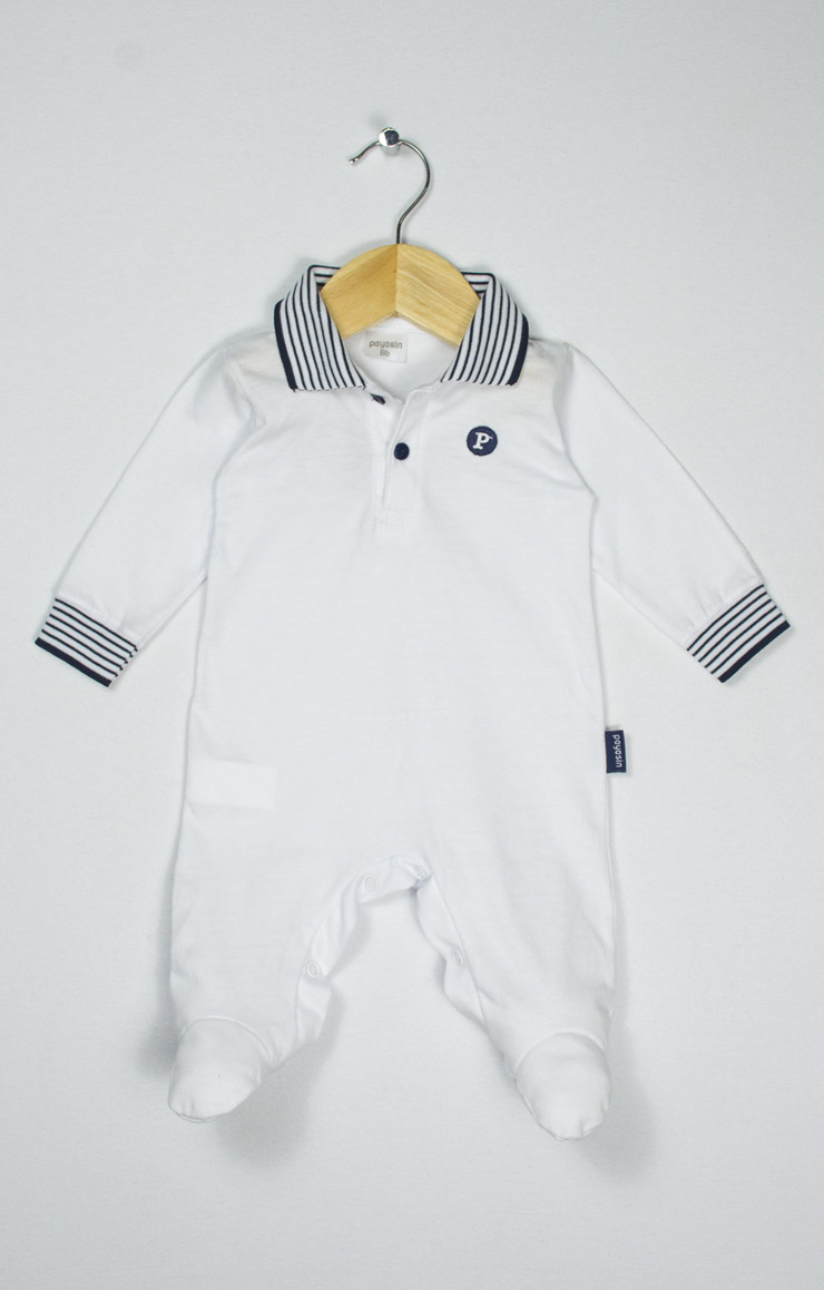 Enterito largo de jersey 100% algodón, con cuello y puños tejidos.