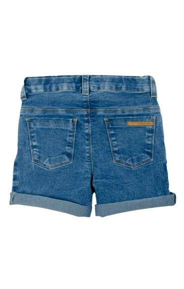 Bermuda de denim. En el interior de cintura tiene elástico con ojal y botón para regular el calce.