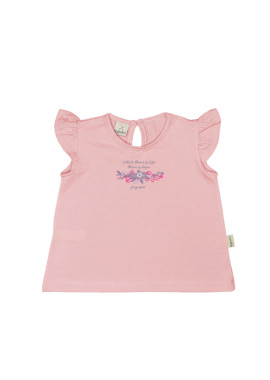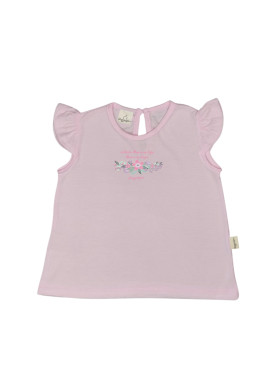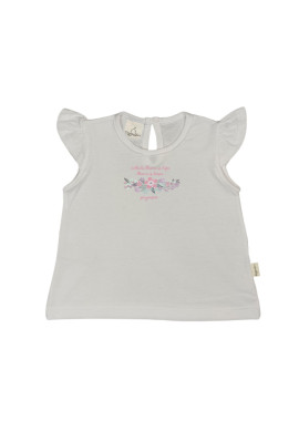 Remera de jersey, material 100% algodón que nos brinda confort y calidad al momento del uso. Delantera con estampa /AMELIA/, sus mangas estan formadas por voladitos con pequeños frunces.Su espalda tiene apertura para facilitar el momento del cambio.Es práctica y muy cómoda, ideal para toda prenda que desees acompañar.Origen: NACIONAL.