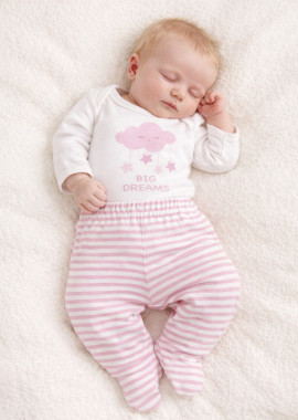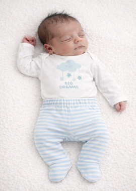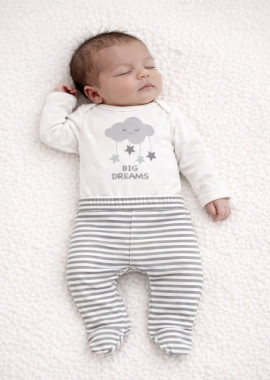 Mini set de ribb compuesto por body y ranita. Ranita lleva elástico en la cintura para una mayor comodidad a la hora del cambio,su body tiene escote base y abertura en hombro con broche.Este set es muy práctico y cómodo brindándole un confort absoluto a la piel de los bebés. Origen: NACIONAL.