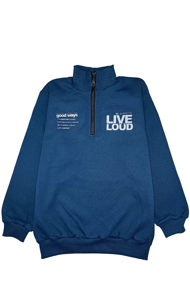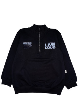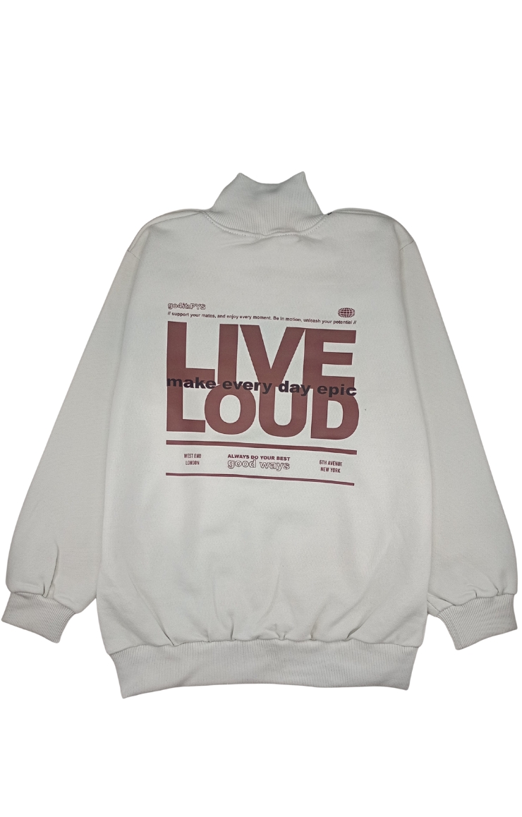 Buzo con cierre de frisa, con estampa en delantera y espalda /LIVE/. Su material 100% algodón es suave y brinda un confort extremo a la hora del uso. Su cintura y puños son de morley al tono. Origen: NACIONAL.