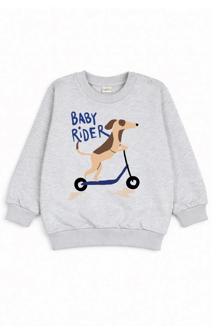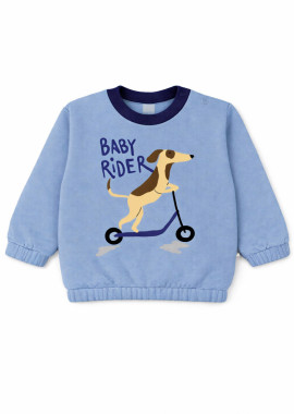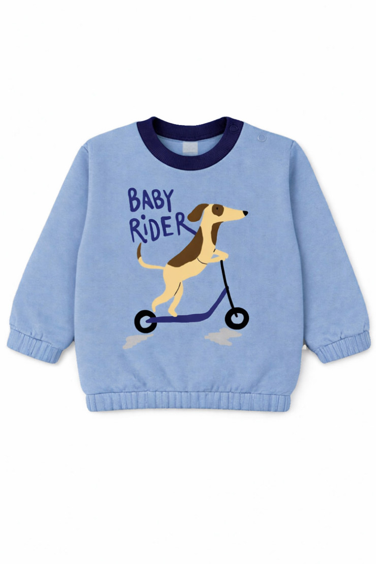 Buzo frisa, su textura suave, 100% algodón hace que ésta prenda te asegure confort y comodidad para tu bebé. Cintura, puños y cuello son de morley al tono del buzo. Delantera con estampa /RIDER/. La apertura de su hombro con broches al tono nos permite facilidad y rapidez a la hora de vestir a tu bebé. Origen: NACIONAL.
