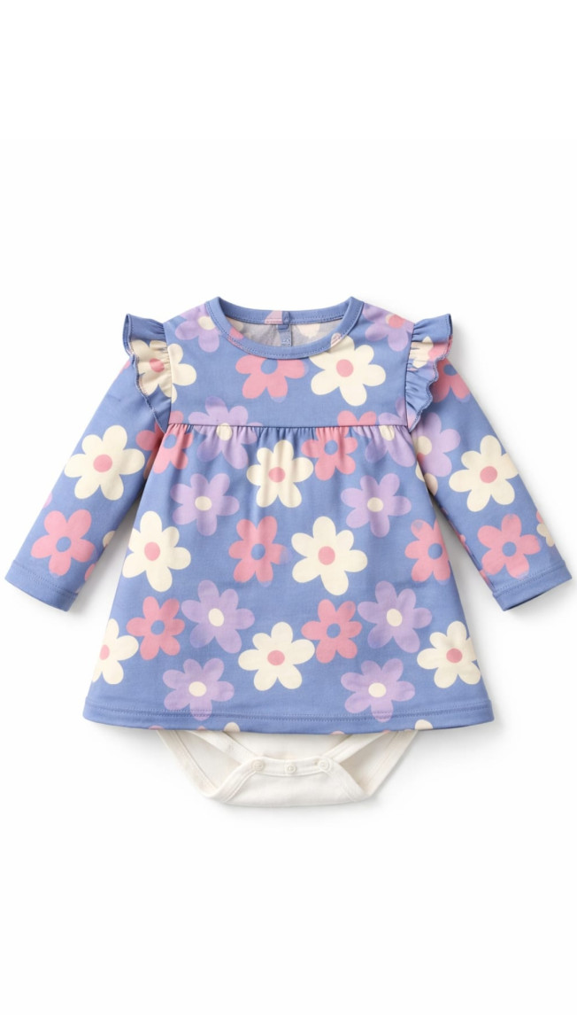 Body vestido de algodón con lycra estampado BELLA, tiene abertura en la espalda. Composicion: 95% algodon 5% elastanoORIGEN: Nacional